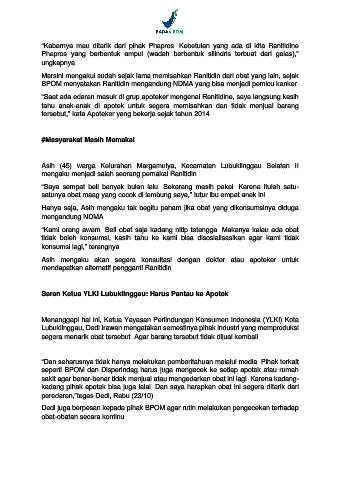 mengaku menjadi salah seorang pemakai Ranitidin.