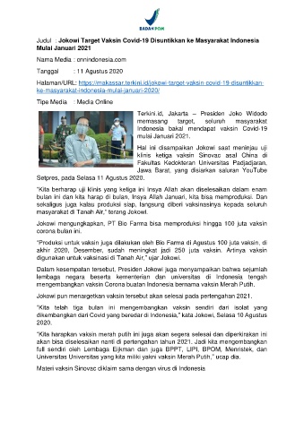 Judul : Jokowi Target Vaksin Covid-19 Disuntikkan ke Masyarakat Indonesia