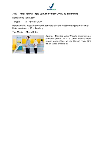 Judul : Foto: Jokowi Tinjau Uji Klinis Vaksin COVID-19 di Bandung