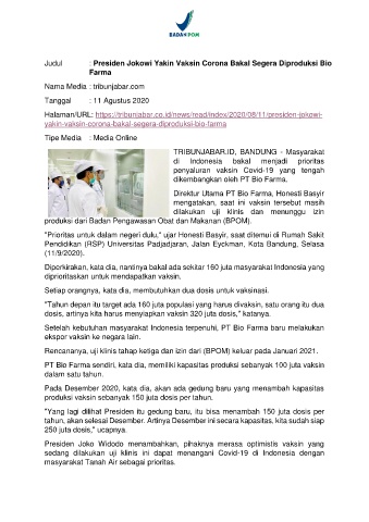 Judul : Presiden Jokowi Yakin Vaksin Corona Bakal Segera Diproduksi Bio