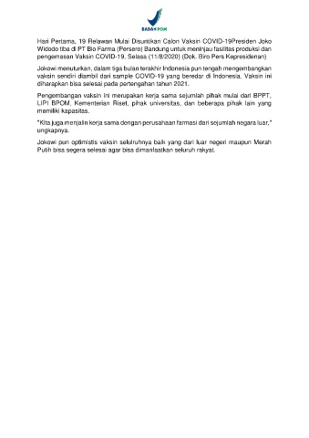 Hari Pertama, 19 Relawan Mulai Disuntikan Calon Vaksin COVID-19Presiden Joko