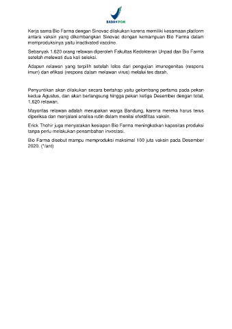 antara vaksin yang dikembangkan Sinovac dengan kemampuan Bio Farma dalam