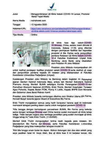 Judul : Menggembirakan Uji Klinis Vaksin COVID-19 Lancar, Produksi
