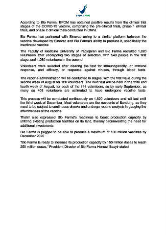 250 million doses," President Director of Bio Farma Honesti Basyir stated.