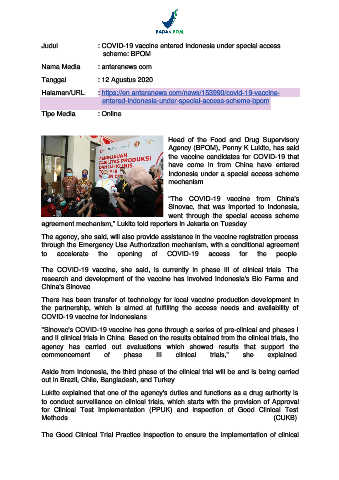 Judul : COVID-19 vaccine entered Indonesia under special access