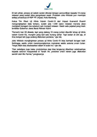 "Kemarin kan 20 diswab, tapi yang datang 19 orang (untuk disuntik tahap uji klinis