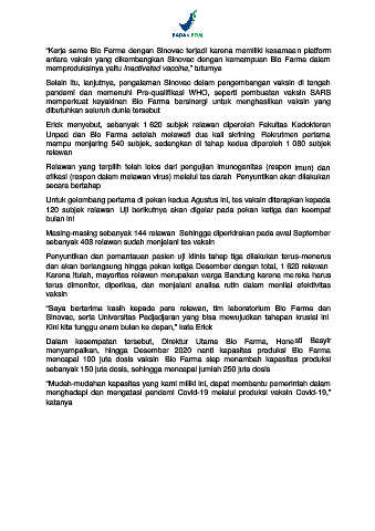 antara vaksin yang dikembangkan Sinovac dengan kemampuan Bio Farma dalam