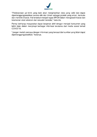 dan memiliki khasiat. Hal tersebut menjadi tugas BPOM dalam mengawal khasiat dan