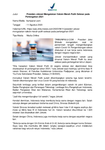 Judul : Presiden Jokowi Mengatakan Vaksin Merah Putih Selesai pada