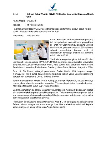 Judul : Jokowi Sebut Vaksin COVID-19 Buatan Indonesia Bernama Merah