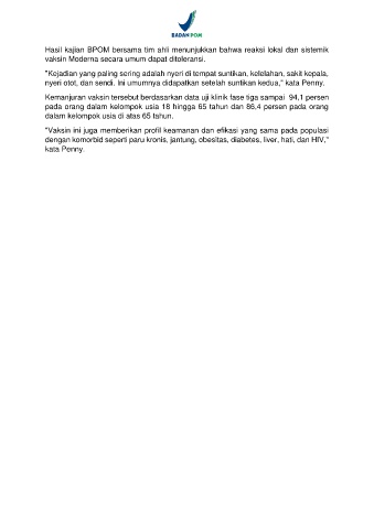 Hasil kajian BPOM bersama tim ahli menunjukkan bahwa reaksi lokal dan sistemik