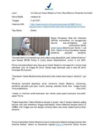 Page 131 - Badan POM Terbitkan EUA Moderna COVID-19 Vaccine Sebagai Vaksin Pertama dari Platform mRNA