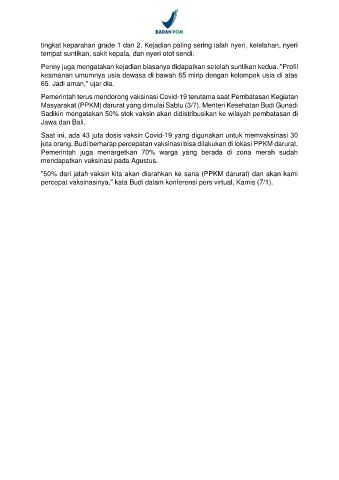juta orang. Budi berharap percepatan vaksinasi bisa dilakukan di lokasi PPKM darurat.
