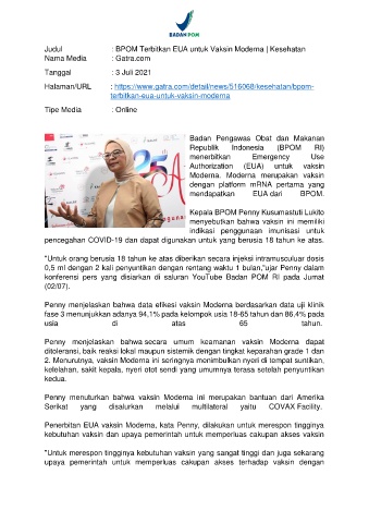 Page 86 - Badan POM Terbitkan EUA Moderna COVID-19 Vaccine Sebagai Vaksin Pertama dari Platform mRNA