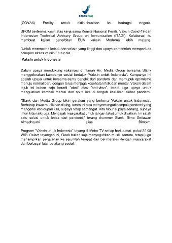 satu solusi untuk lepas dari pandemi," terang drummer Slank, Bimo Setiawan