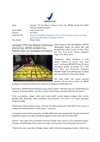 Page 117 - Badan POM Tindak Tegas Sarana Produksi Tahu Berformalin di Parung