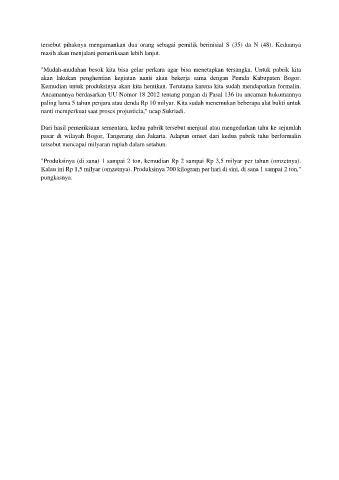 pasar di wilayah Bogor, Tangerang dan Jakarta. Adapun omset dari kedua pabrik tahu berformalin