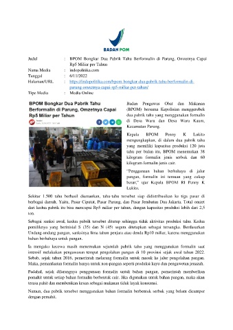 Halaman/URL : https://indopolitika.com/bpom-bongkar-dua-pabrik-tahu-berformalin-di-