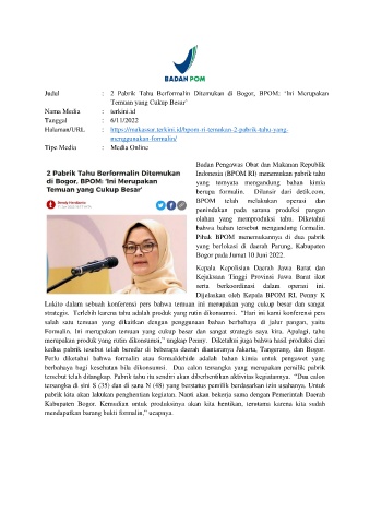 Judul : 2 Pabrik Tahu Berformalin Ditemukan di Bogor, BPOM: „Ini Merupakan