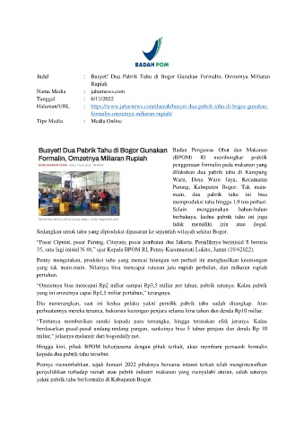 Judul : Busyet! Dua Pabrik Tahu di Bogor Gunakan Formalin, Omzetnya Miliaran
