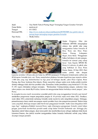 Page 81 - Badan POM Tindak Tegas Sarana Produksi Tahu Berformalin di Parung