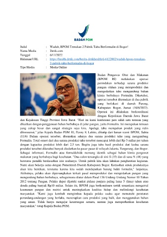 Judul : Waduh, BPOM Temukan 2 Pabrik Tahu Berformalin di Bogor!