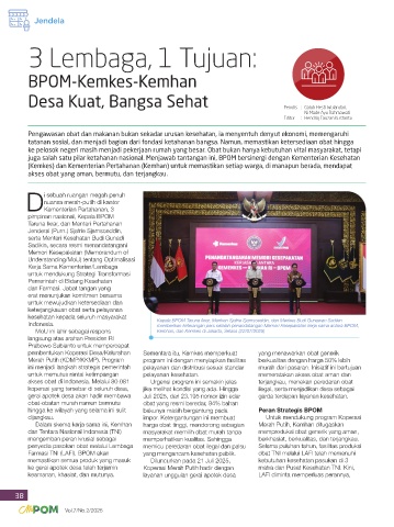 juga salah satu pilar ketahanan nasional. Menjawab tantangan ini, BPOM bersinergi dengan Kementerian Kesehatan