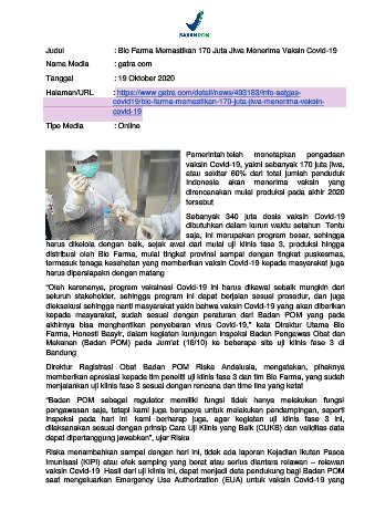 Judul : Bio Farma Memastikan 170 Juta Jiwa Menerima Vaksin Covid-19
