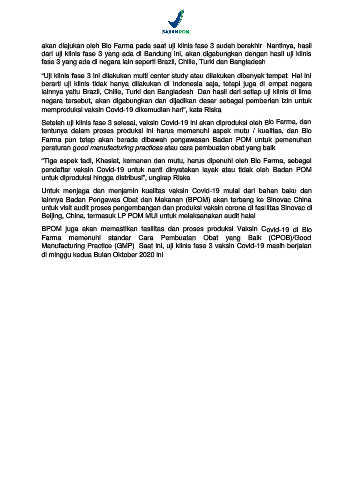 Manufacturing Practice (GMP). Saat ini, uji klinis fase 3 vaksin Covid-19 masih berjalan
