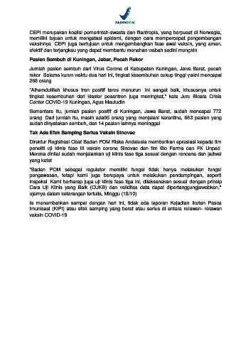 vaksinnya. CEPI juga bertujuan untuk mengembangkan fase awal vaksin, yang aman,