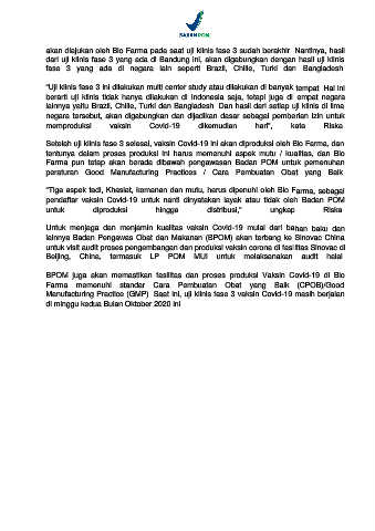 Manufacturing Practice (GMP). Saat ini, uji klinis fase 3 vaksin Covid-19 masih berjalan