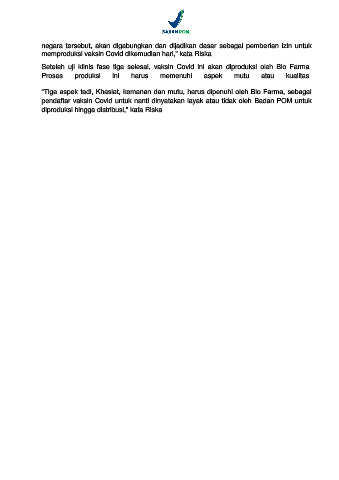 memproduksi vaksin Covid dikemudian hari," kata Riska.