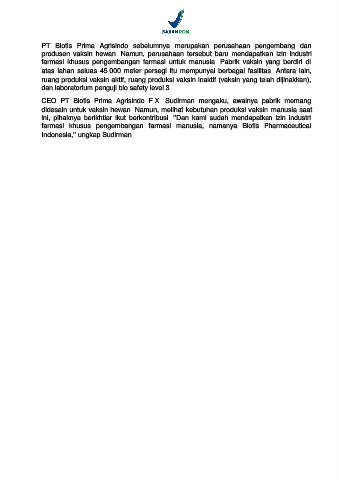 produsen vaksin hewan. Namun, perusahaan tersebut baru mendapatkan izin industri