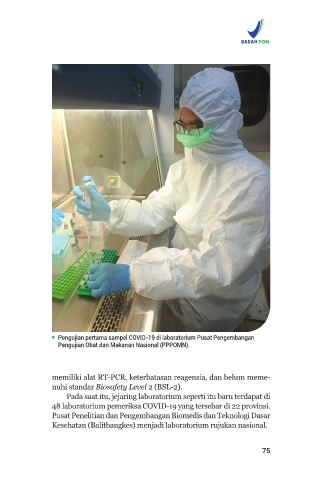 Pengujian pertama sampel COVID-19 di laboratorium Pusat Pengembangan
