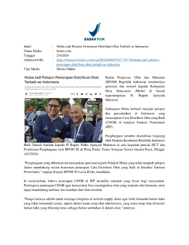 Judul : Muba Jadi Pelopor Penerapan Distribusi Obat Terbaik se-Indonesia