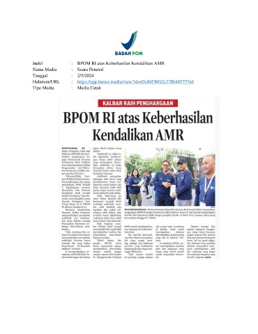 Judul : BPOM RI atas Keberhasilan Kendalikan AMR
