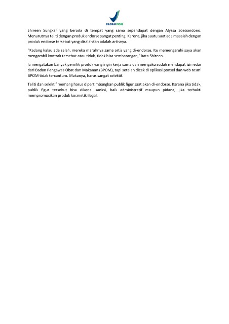 dari Badan Pengawas Obat dan Makanan (BPOM), tapi setelah dicek di aplikasi ponsel dan web resmi