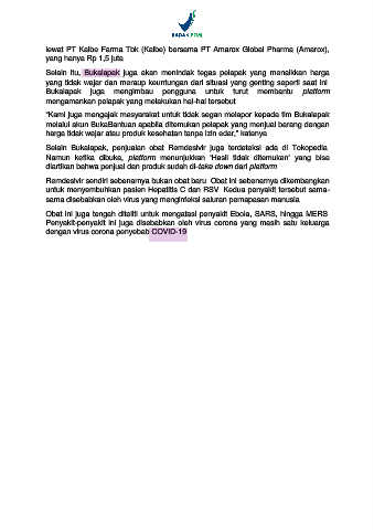 Page 108 - Penerbitan Siaran Pers Tingkatkan Angka Kesembuhan dan Turunkan Angka Kematian Pasien COVID-19, Badan POM Terbitkan Izin Penggunaan dalam Kondisi Darurat Obat Favipiravir dan Remdesivir_Neat