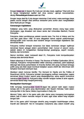 mahalnya obat Covid-19, Fukuyama tetap memiliki harapan bahwa di akhir sejarah,