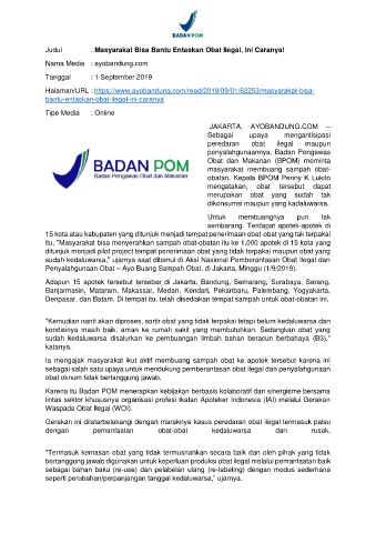 Judul : Masyarakat Bisa Bantu Entaskan Obat Ilegal, Ini Caranya!