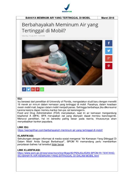 BAHAYA MEMINUM AIR YANG TERTINGGAL DI MOBIL Maret 2018