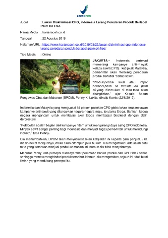 Halaman/URL : https://www.harianaceh.co.id/2019/08/22/lawan-diskriminasi-cpo-indonesia-