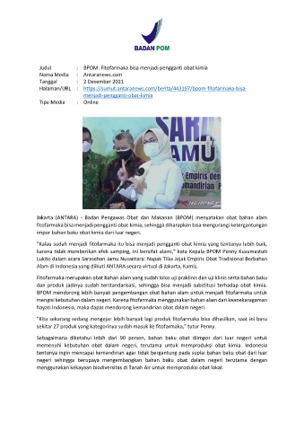 Halaman/URL : https://sumut.antaranews.com/berita/443197/bpom-fitofarmaka-bisa-