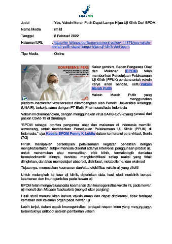 Judul : Yes, Vaksin Merah Putih Dapat Lampu Hijau Uji Klinik Dari BPOM