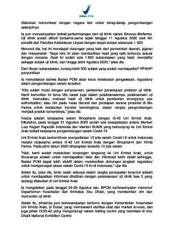 Kedua adalah kerjasama vaksin Sinopharm dengan G-42 Uni Emirat Arab.