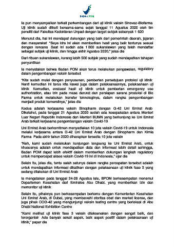 Kedua adalah kerjasama vaksin Sinopharm dengan G-42 Uni Emirat Arab.