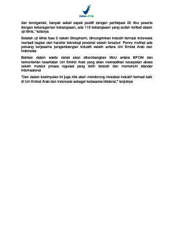 peluang kerjasama pengembangan industri vaksin antara Uni Emirat Arab dan