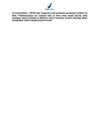 Ia menambahkan, BPOM siap mengawal mulai pemberian persetujuan protokol uji