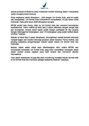 Pada kerjasama vaksin Sinopharm - G42 dengan Uni Emirat Arab, saat ini sudah