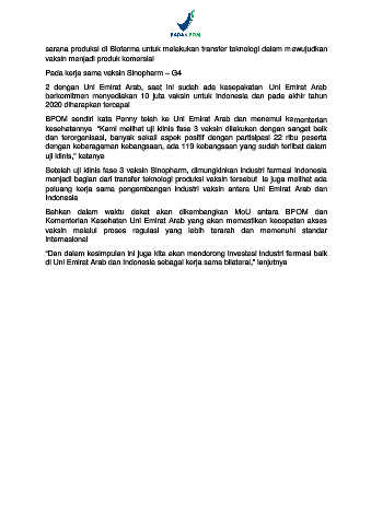 kesehatannya. ―Kami melihat uji klinis fase 3 vaksin dilakukan dengan sangat baik